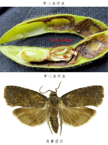 大豆食心虫是昆虫纲鳞翅目小卷蛾科的一种害虫。俗称大豆蛀荚虫、小红虫。幼虫食叶,吐丝卷叶,严重时可吃光叶片仅 剩叶脉。大豆结荚期是食心虫危害时期,当食心虫的幼虫危害大豆时,会咬破豆荚或者从绿色嫩荚缝钻入,未成熟的豆粒也会被咬食,对豆粒造成不同程度的损伤,轻则豆粒上会有沟状出现,重则豆粒能被咬食一半左右,结果,豆粒残缺,产量和质量都会受影响。