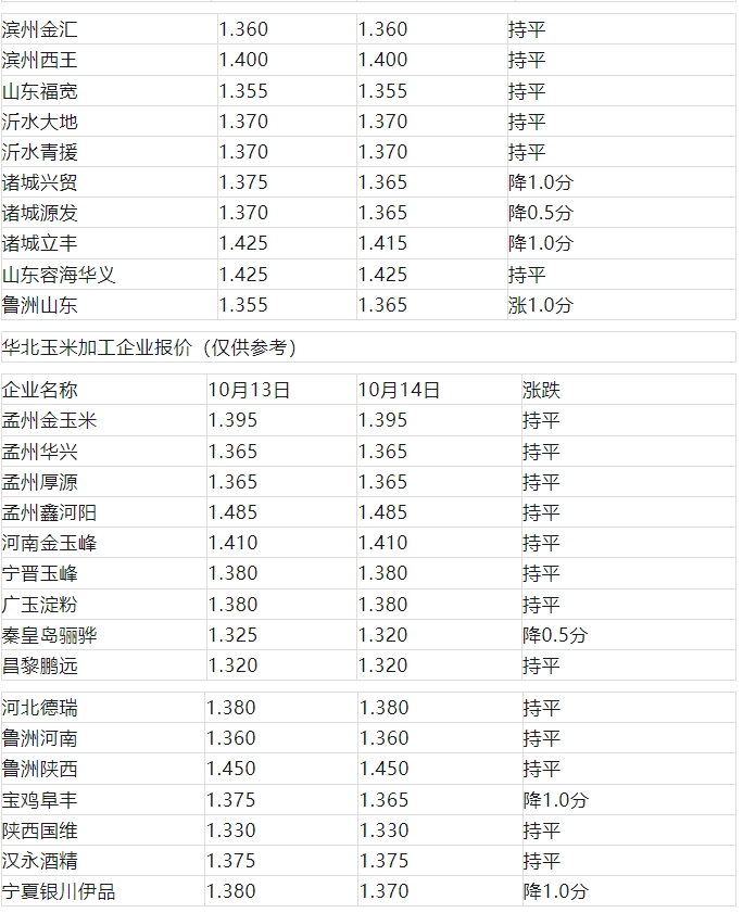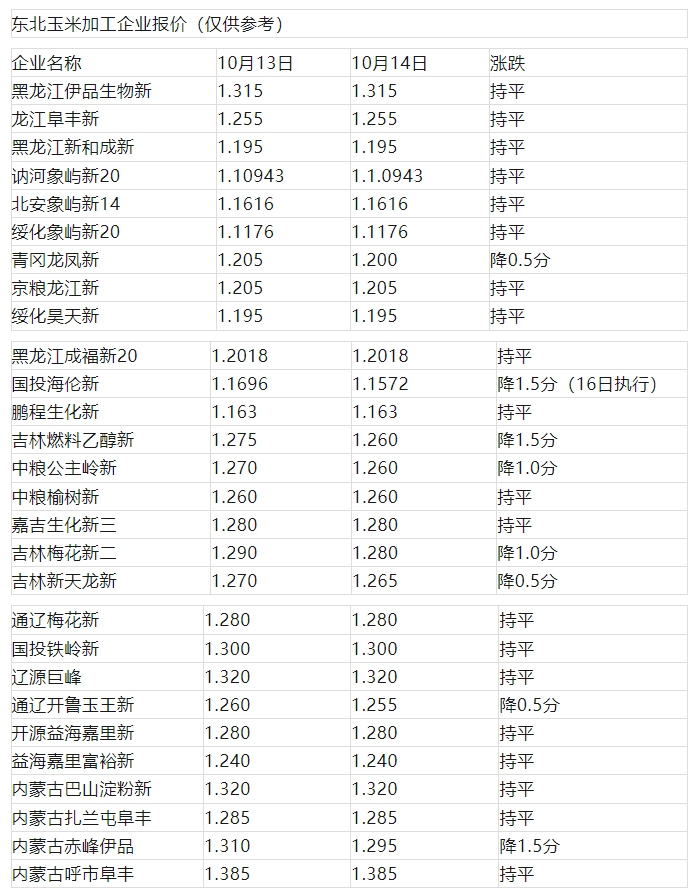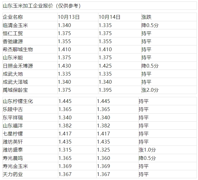 潍坊盛泰药业有限公司自2023年10月14日16:40起再卸车的玉米价格执行1.325元/斤,检验标准不变。涨1分
