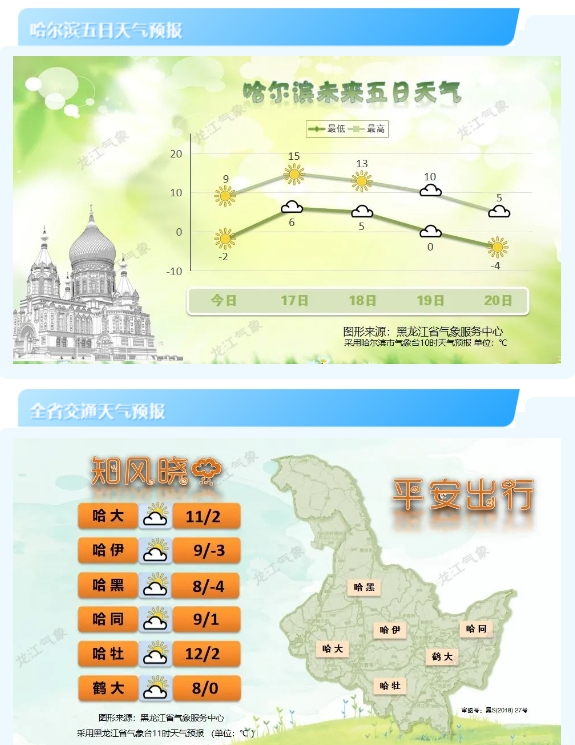 16日夜间*** 低气温:大兴安岭-8~-6℃,黑河、伊春、绥化北部、哈尔滨-4~-2℃,其它地区0~2℃。