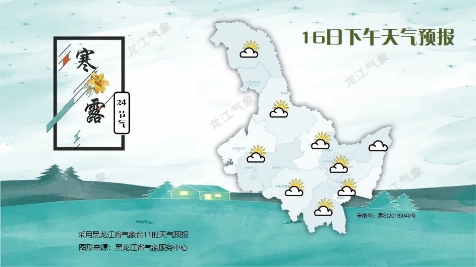 黑龙江省气象台2023年10月16日11时发布16日下午至19日白天全省天气预报: